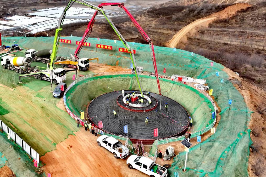 新华网银川3月26日电(记者 许晋豫)26日上午,国家能源集团宁夏腾格里能源开发有限公司(宁夏电力)“宁湘直流”配套固原100万千瓦风电基地项目顺利完成首台风机第一方混凝土浇筑,这标志着目前全国最大“沙戈荒”能源大基地“首批、首台”风电项目建设取得实质性进展。