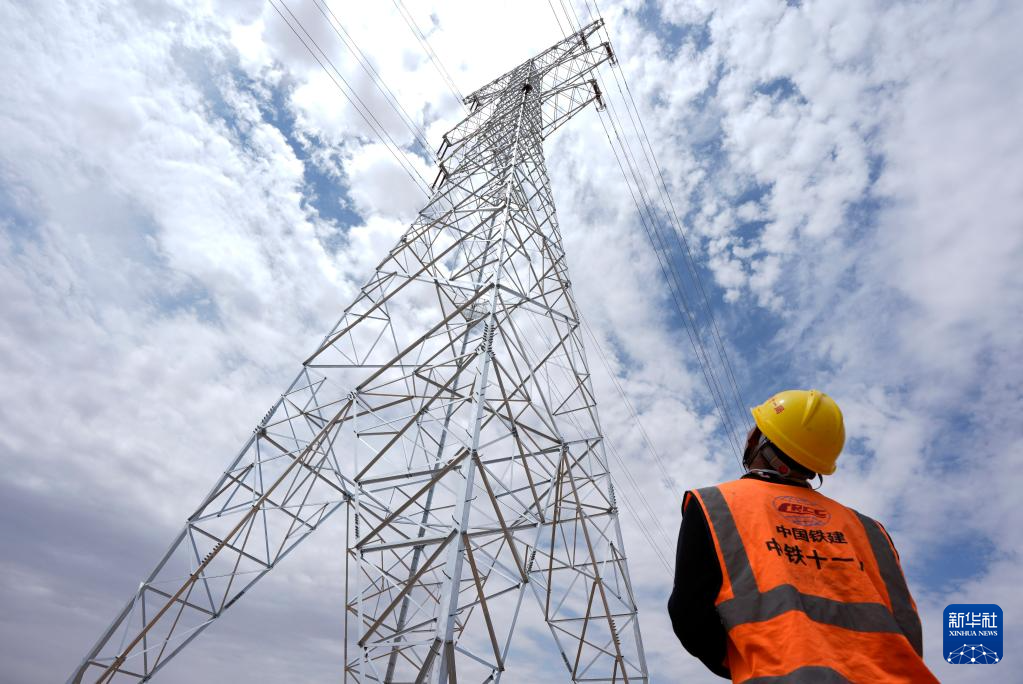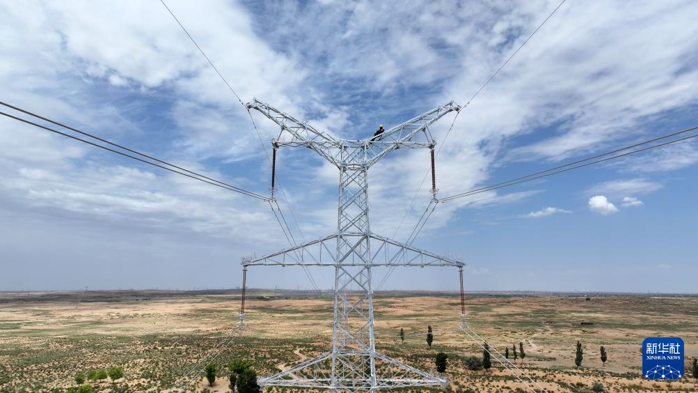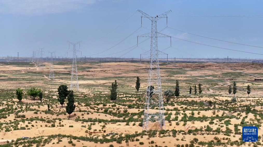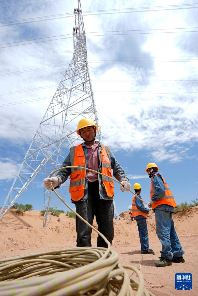 据了解,该项目线路贯穿宁夏银川市灵武市及吴忠市盐池县,全长36公里。项目建成后,将为宁夏绿色能源高效利用做出积极贡献。新华社记者 王鹏 摄