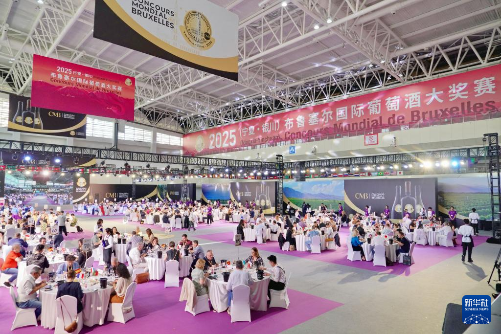 这是6月10日在宁夏银川拍摄的第32届布鲁塞尔国际葡萄酒大奖赛现场。新华社记者 杜涓涓 摄