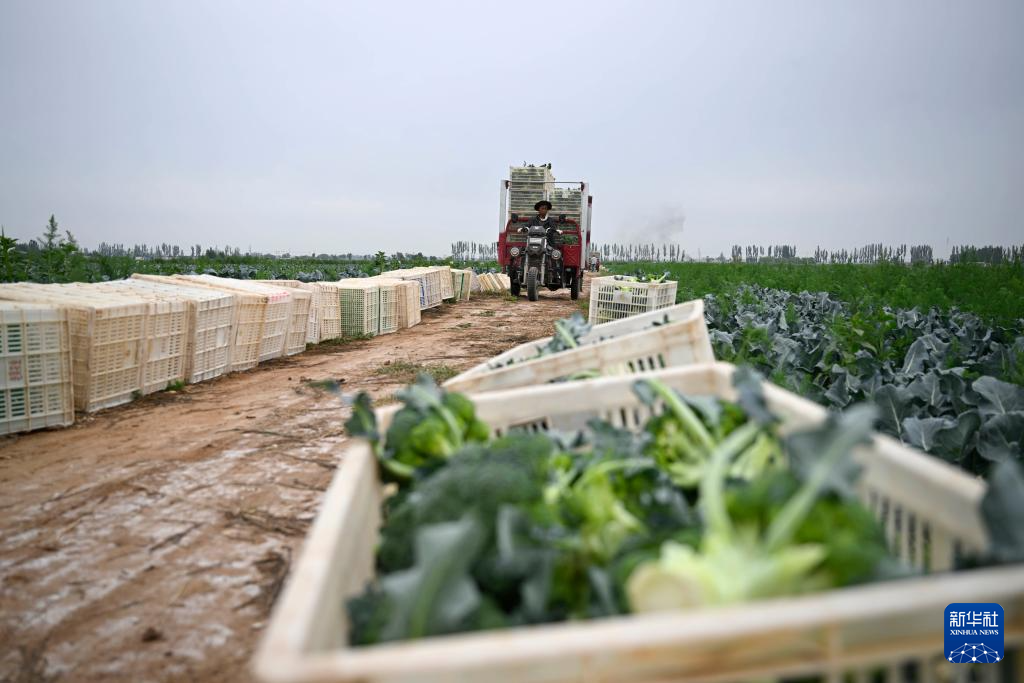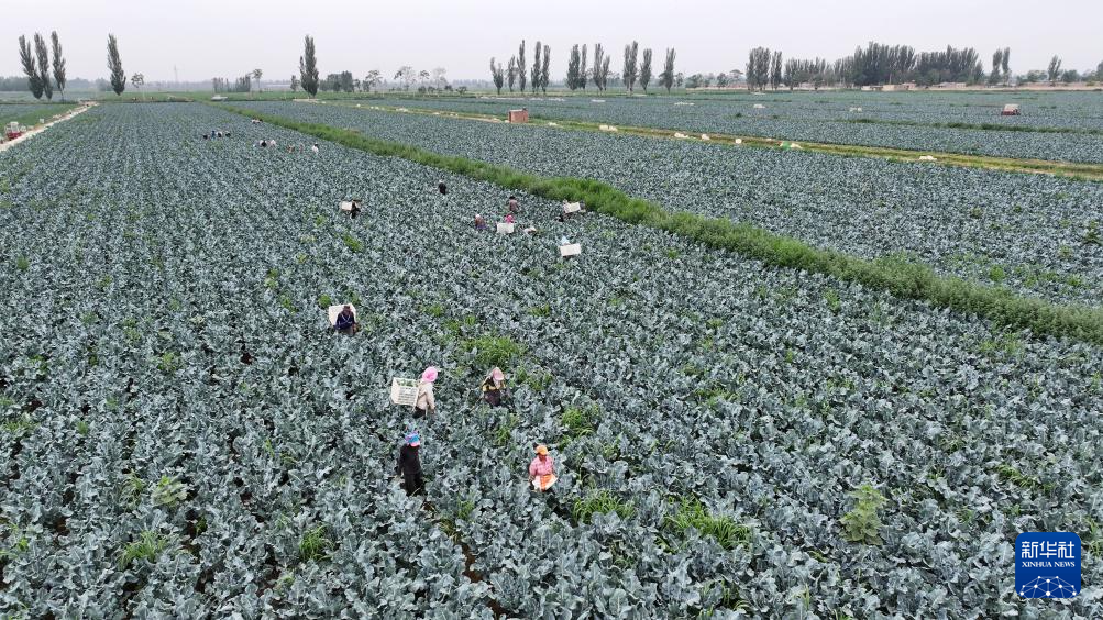 近日,宁夏各供港蔬菜基地迎来丰收季。在位于银川市贺兰县立岗镇的供港蔬菜种植基地里,采摘工忙碌在田间地头,采摘西兰花、芥蓝、菜心等蔬菜。
