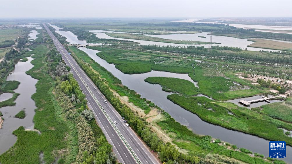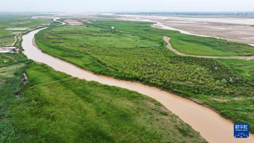 夏日,黄河宁夏段滩涂湿地绿意盎然,生机勃发,尽显生态之美。新华社记者 王鹏 摄