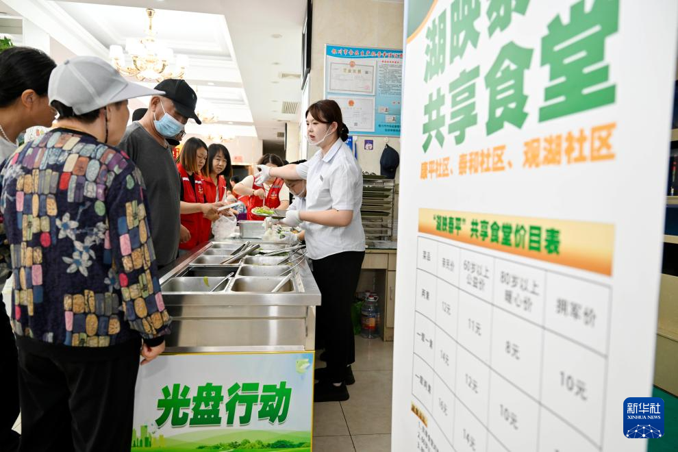 6月26日,居民在宁夏银川市兴庆区“湖映泰平”共享社区食堂就餐。