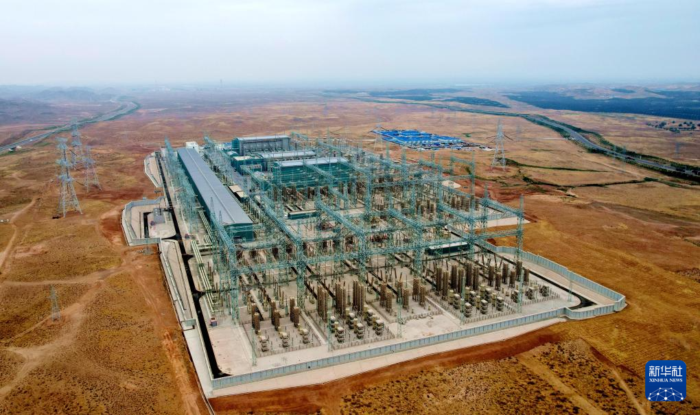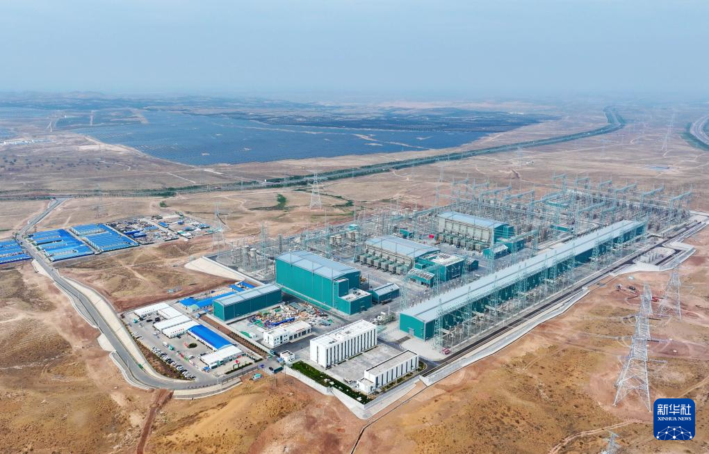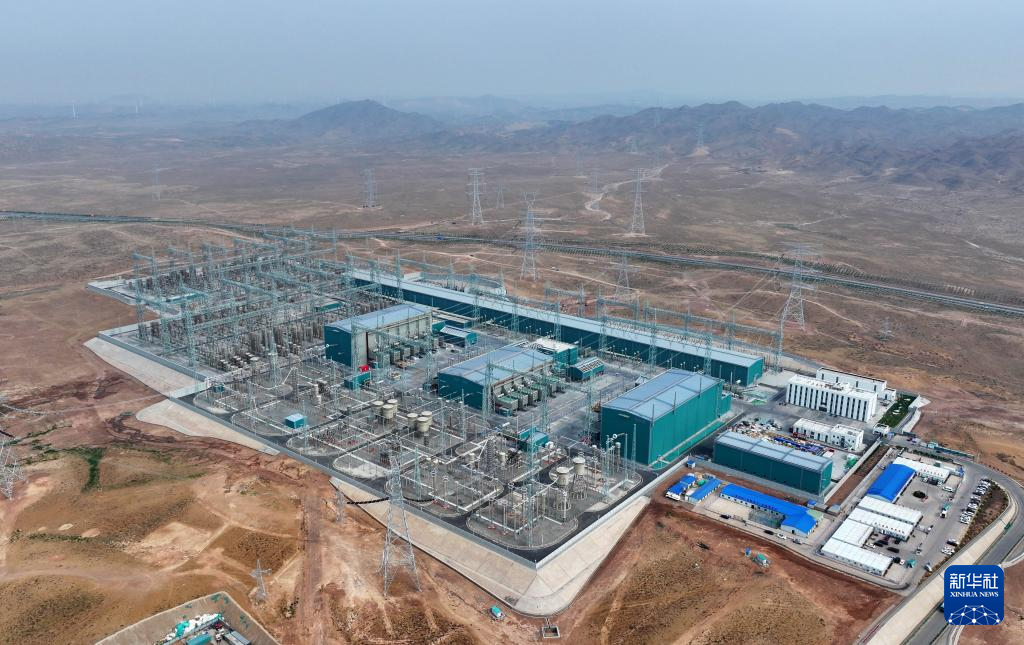 这是6月24日拍摄的“宁电入湘”工程宁夏中卫市中宁换流站(无人机照片)。新华社发(周序鹏 摄)