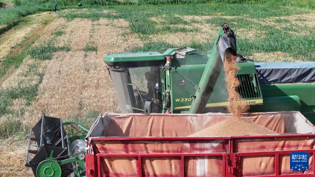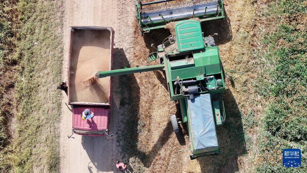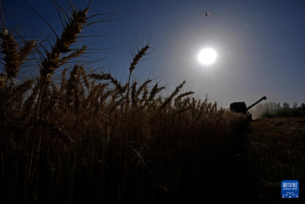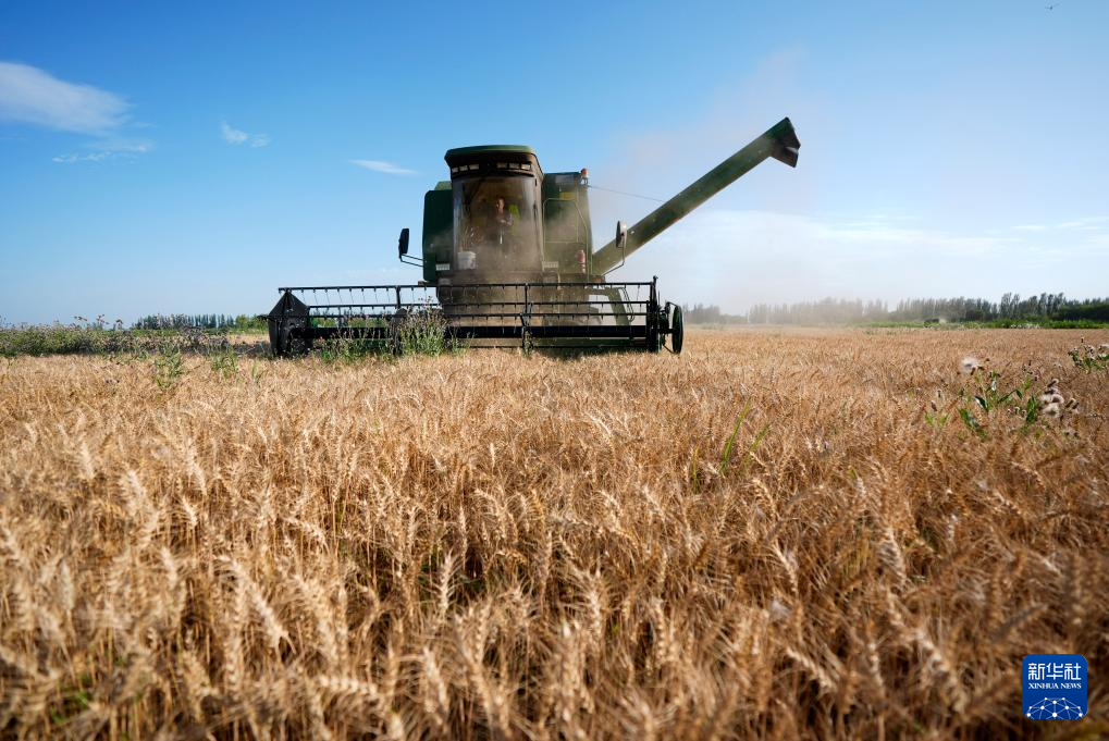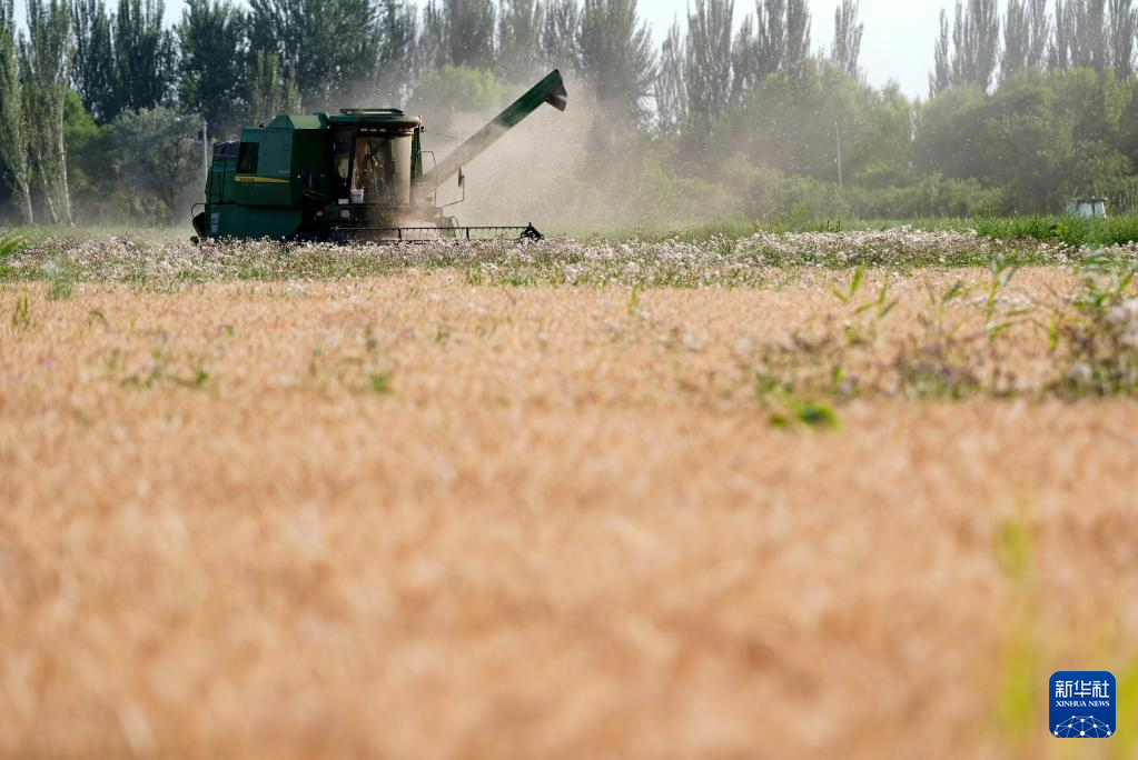 近日,宁夏银川市引黄灌区迎来小麦收获季,当地农户抢抓晴好有利天气,开展夏收工作。新华社记者 王鹏 摄