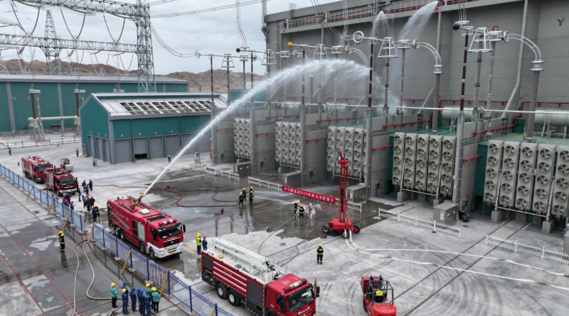 7月16日,国网宁夏超高压公司联合中宁应急救援大队在“宁电入湘”工程的送端——中宁换流站开展实战化消防应急演练。通过多环节协作提升电力设施火灾应急处置能力,为“宁电入湘”工程迎峰度夏保供电打下坚实基础。