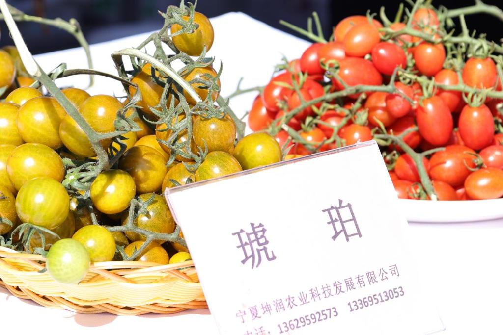 展销区现场,红、黄、绿、紫等多色番茄琳琅满目,引来采购商和市民品鉴。“贺兰番茄不仅色泽亮丽、果型美观,更以硬度高、抗病性强、高产稳产著称,适合长途储运和早春越夏栽培。”贺兰县农业农村局局长陈瑛现场推介。