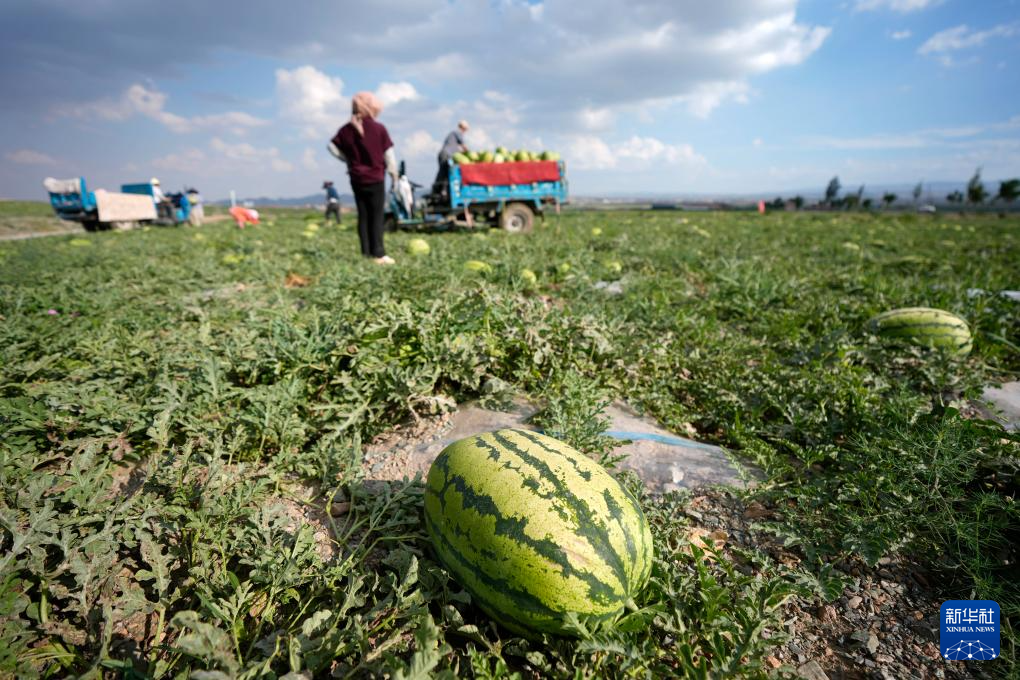 据了解,宁夏中卫市今年硒砂瓜种植面积46.95万亩,预计产量将达115万吨,硒砂瓜产业已成为当地农户增收致富的支柱产业。新华社记者 王鹏 摄