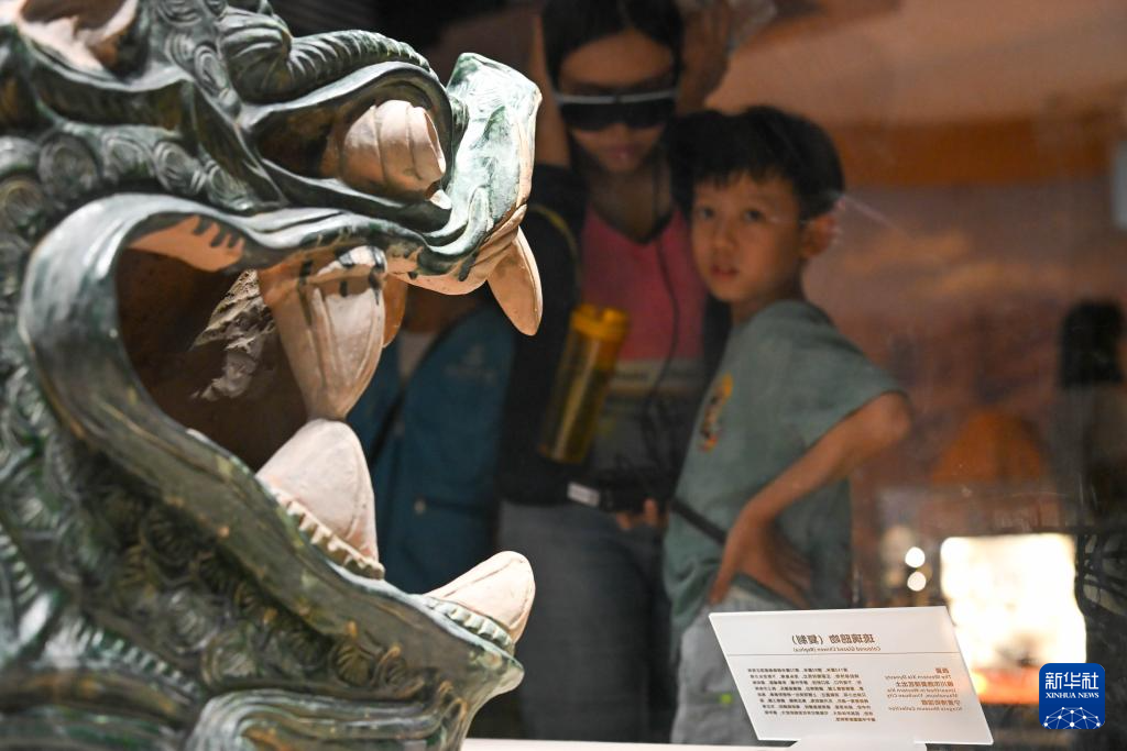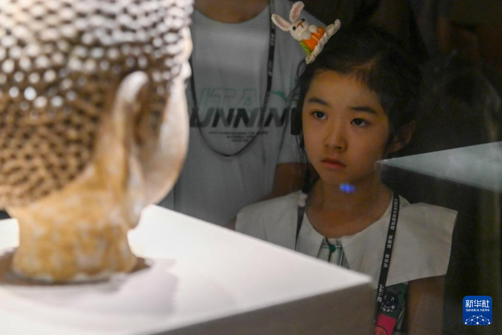 7月27日,小朋友在宁夏博物馆西夏陵展区参观。