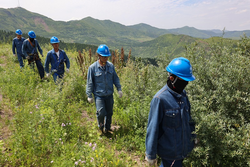 固原供电公司带电作业人员轻装上山,准备开展作业。刘辉 摄