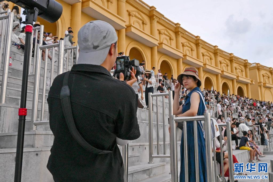 7月30日,游客在览山公园打卡拍照。陈周旭洋 摄
