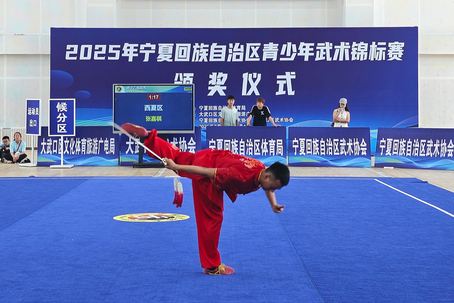 8月1日,2025年宁夏回族自治区青少年武术锦标赛在石嘴山市大武口区全民健身中心开赛。