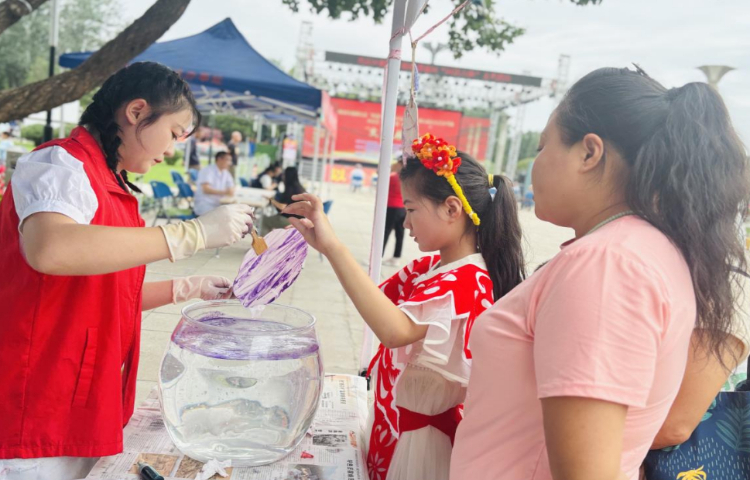 社区积极链接多方资源,以群众需求为导向,打造一站式服务平台,让居民在家门口就能享受各色服务。非遗体验摊位前挤满了跃跃欲试的居民,剪纸摊位上,孩子们围坐在非遗传承人孙春玲身边,用稚嫩的小手握着剪刀,在指导下剪出简单的秋叶图案;漆扇体验区更是排起长队,居民们拿起画笔,在素白的扇面上绘制秋景,晾干后的漆扇带着独特的光泽,成为独一无二的立秋纪念品。