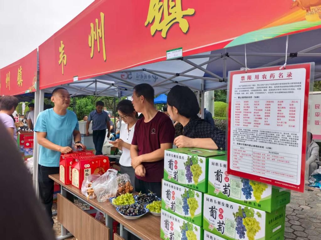 新华网银川8月14日电(记者艾福梅)在宁夏吴忠市盛元广场,清晨7点已是人声鼎沸,二十余个挂着“党建引领 同心助农”横幅的展位前,挤满了拎着购物袋的机关干部。“吴忠林场葡萄给我留5箱!”“小番茄再来两盒!”采购声此起彼伏,一场由机关干部唱主角的消费助农行动正在火热上演。