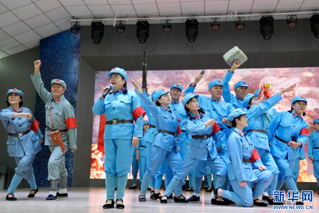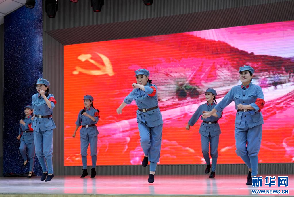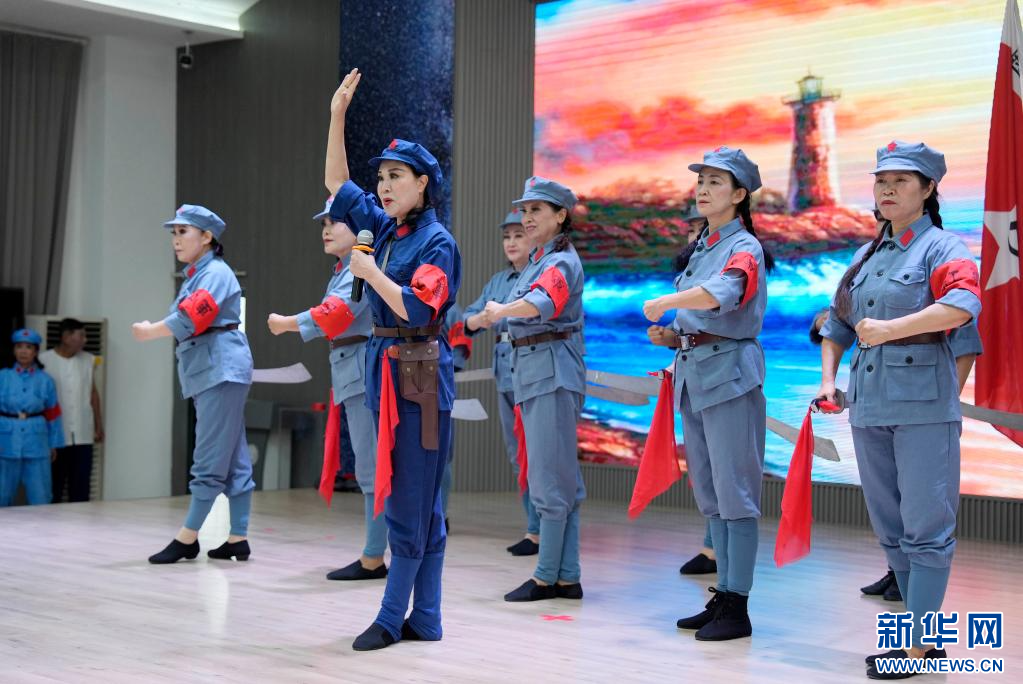 8月20日,银川市丽景街康平社区慧中艺术团演员在现场表演歌舞《红色娘子军》。新华社记者 王鹏 摄