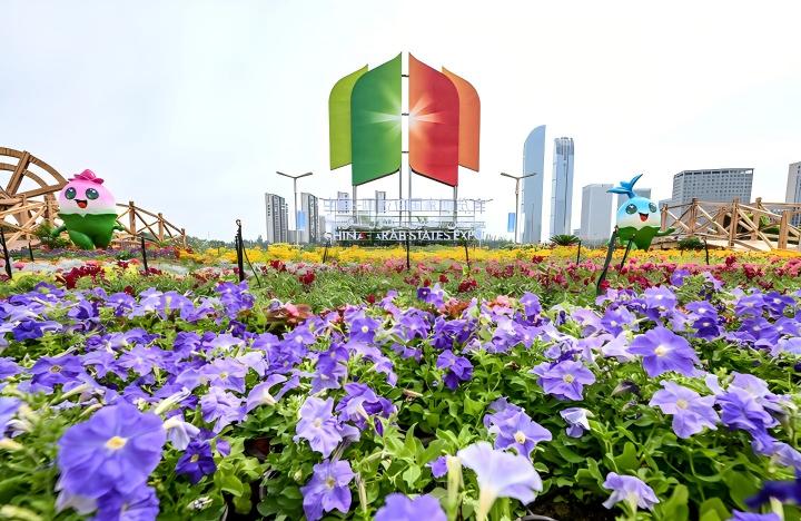 这是8月28日在宁夏银川市拍摄的第七届中国—阿拉伯国家博览会开幕式会场外景。 新华社记者 冯开华 摄