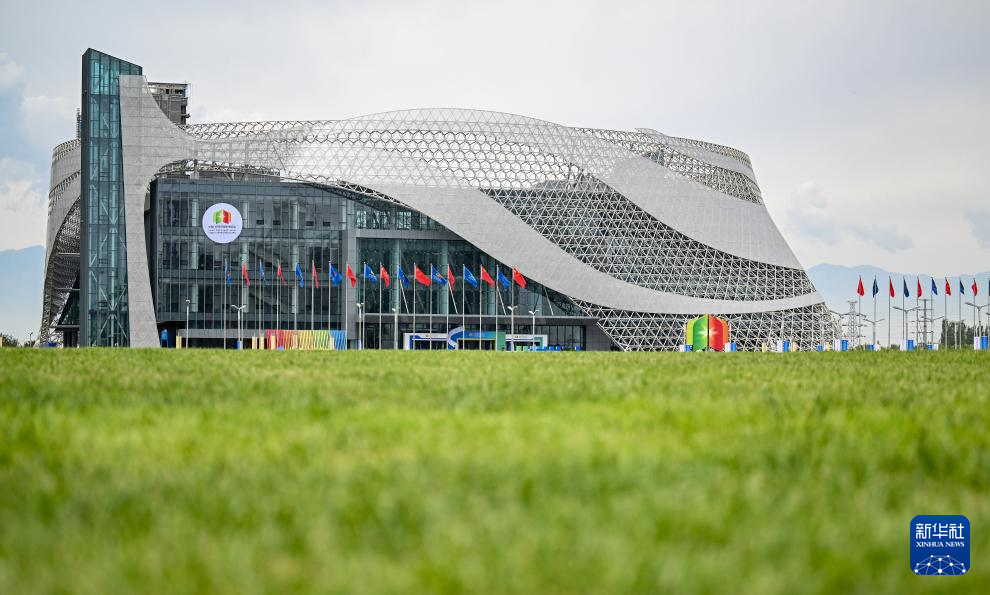 这是8月28日在宁夏银川市拍摄的第七届中国—阿拉伯国家博览会开幕式会场外景。新华社记者 冯开华 摄