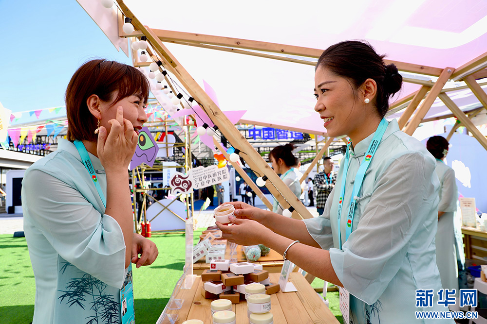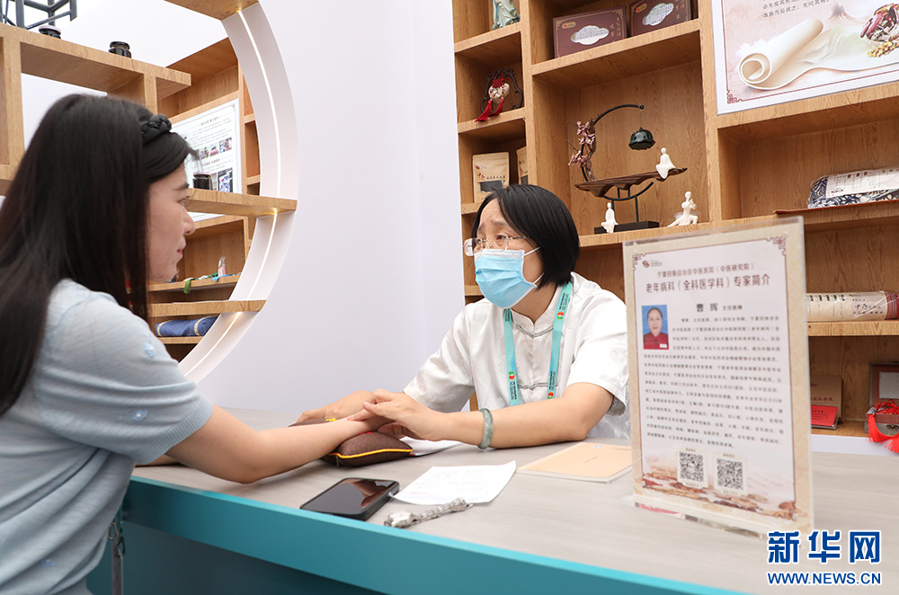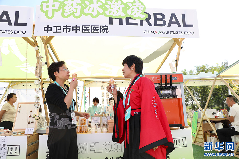 8月28日,第七届中国—阿拉伯国家博览会卫生健康对接交流活动在宁夏银川百瑞源殷红子熟枸杞庄园举行。活动为期4天, 以“数智引领健康未来 传统医药全球共享”为主题,设置了“千年医道”“药香绵长”“寻味药膳”“道智中医”“中国智造”“创意本草”“红杞匠心”七个特色主题展区,中医药文化氛围满满,国内外嘉宾沉浸式体验传统中医的魅力。新华网 张洁龙 摄
