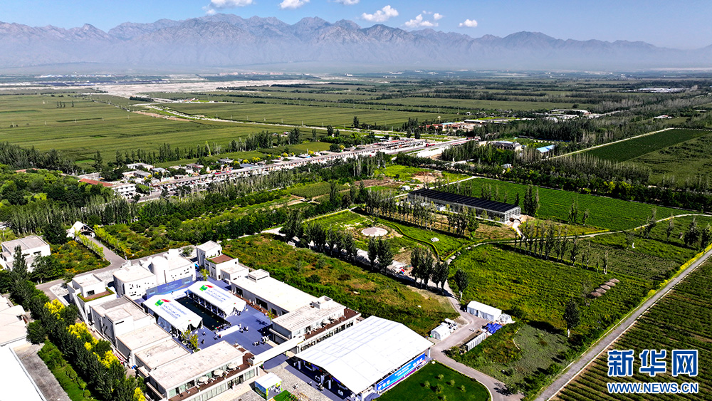 图为航拍第七届中国—阿拉伯国家博览会卫生健康对接交流活动现场。
