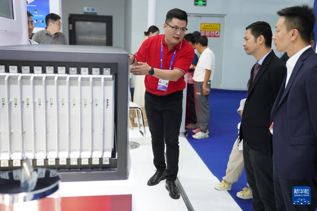 8月29日,参展商在博览会现场向观众介绍一款浸没相变液冷服务器。新华社记者 赵宇思 摄