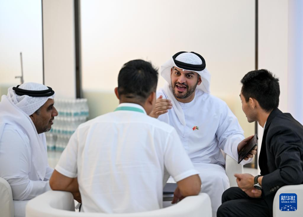 8月30日,在博览会上,来自阿联酋的参会人员(右二)与中国参展商洽谈。新华社记者 冯开华 摄