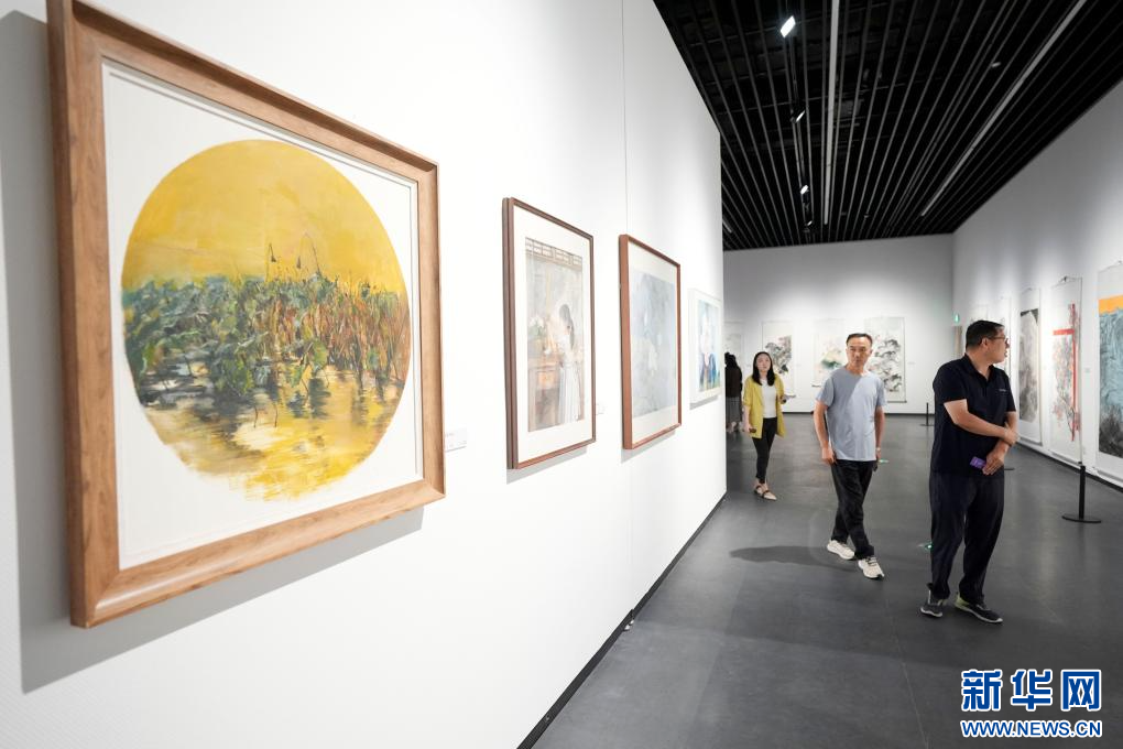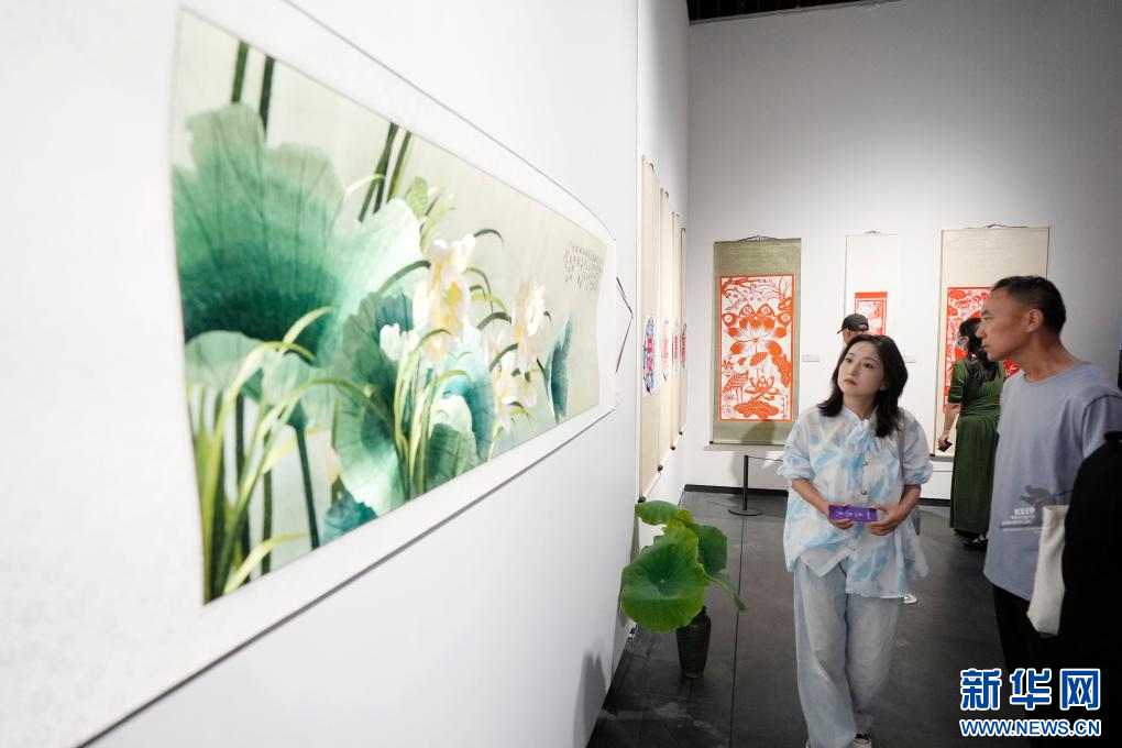 9月10日,参观者在宁夏美术馆观看展出的廉洁文化主题书画作品。新华社记者 王鹏 摄