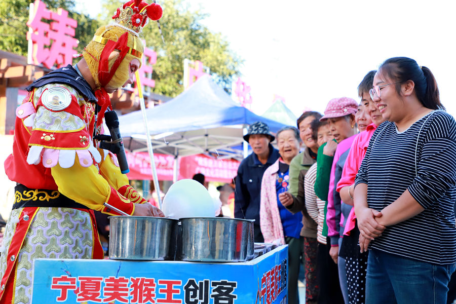 活动在欢快锣鼓声中拉开帷幕,群众自编自演的表演唱《移风易俗树新风》、小合唱《走进新时代》以及器乐合奏《塞上江南宁夏美》等文艺节目,生动展现了新时代农民积极向上的精神风貌。宁夏文联“强基工程”文艺志愿服务队“时代风尚”专场演出火热助兴,歌舞《春满人间百花开》《丰收中国年》《新花儿与少年》、女声独唱《幸福赞歌》等节目接连登场,特别是男女声二重唱《我引绿洲接长河》以激昂的演唱,将活动现场气氛推向高潮。