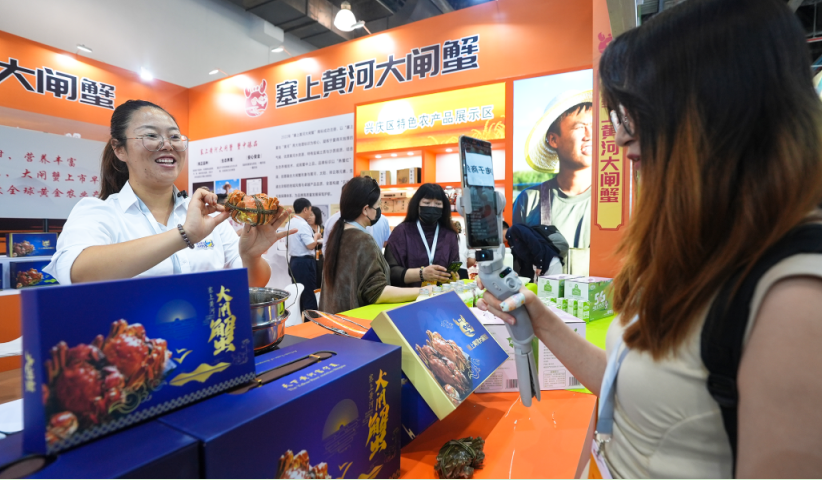 蟹博会上,包括中国科学院院士、中国渔业协会会长、上海海洋大学教授在内的众多水产领域顶尖专家齐聚一堂,共同探讨技术、交流经验。兴庆区参展团队积极与专家们互动,为“塞上黄河大闸蟹”品质的精益求精汲取智慧。展会现场,兴庆区组织宁夏鑫泽航农业科技发展有限公司、宁夏乐乐树农业科技有限公司、宁夏奶牛咖乳制品有限公司等4家重点企业,乐乐树水果番茄、奶牛咖乳制品等特色农产品参展,让上海市民及客商直观感受兴庆区大闸蟹及特色农产品的优异品质。