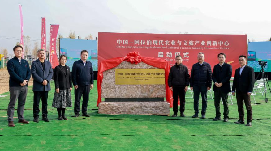 新华网银川10月24日电(记者张泽钰)24日上午,宁夏回族自治区银川市永宁县闽宁镇与兴庆区两地同步举行“中国—阿拉伯现代农业与文旅产业创新中心”与“乡村振兴+闽宁模式—现代农文旅融合发展创新基地”启动仪式,银川市人民政府代表、专家代表与阿拉丁控股集团代表共同为创新中心揭牌。