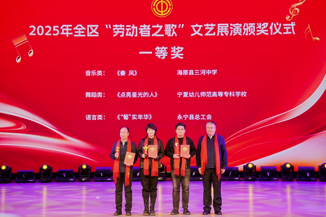 10月31日,银川市工人文化宫内华灯璀璨,气氛热烈,由宁夏总工会主办的2025年全区“劳动者之歌”文艺展演暨颁奖仪式在此举行。全区各级劳动模范、获奖单位代表、演职人员及现场观众共400余人齐聚一堂,共同见证了这场属于劳动者的艺术盛宴与荣耀时刻,用精彩的文艺节目深情礼赞劳动之美,激昂唱响时代强音。