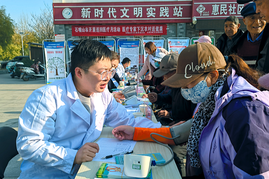 11月4日,宁夏回族自治区石嘴山市巡回医疗月活动在大武口区星海镇惠民社区、惠农区燕子墩乡海燕村、平罗县红崖子乡红瑞村同时启动,一支支由市级大医院专家组成的“移动医疗队”将优质的医疗服务送到群众“家门口”。