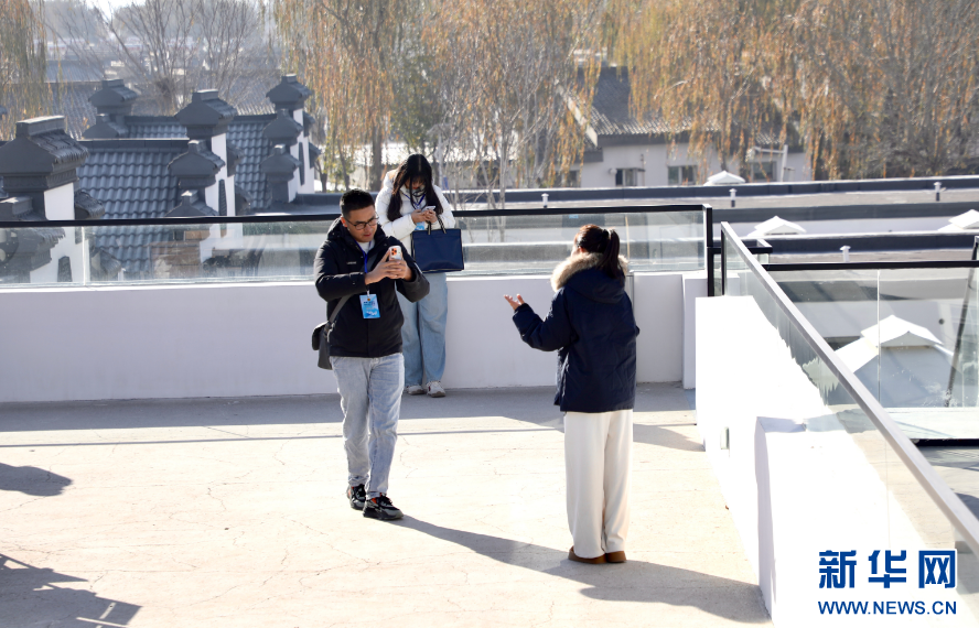 11月19日,晴冷冬日,“聚焦工会服务 助力‘三区’建设”主题采风活动走进金凤区丰登镇润丰村润丰宿集,阳光从南面的落地窗探入,径直穿透了北面对称的玻璃墙,洒在了摆在大厅正中间的木质长桌茶台上。自媒体人宁夏花儿传承人黄亚,面对着“西北猫王”王海波的“神级”运镜,现场演绎了一曲花儿“请茶歌”,邀请在座的游客和网友们,喝下这杯“乡味”十足的八宝茶。润丰村党支部书记、工会主席王鹏程喜笑盈腮,这位为村带货快2年的“三农博主”迎来了“同行”的光顾。“不用我上镜,润丰村的‘兴农’故事又将开始‘刷屏’‘出圈’,真是‘赚到了’。”