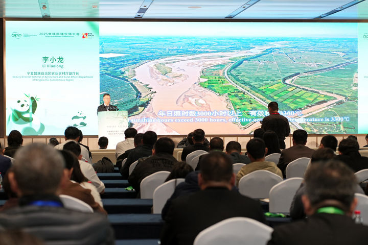 11月21日,在四川成都举办的“2025全球熊猫伙伴大会·宁夏特色农产品推介活动”上,宁夏回族自治区农业农村厅党组成员、副厅长李小龙向与会嘉宾作推介。他表示,宁夏依托黄河滋养与北纬38°光热资源,孕育出以葡萄酒、枸杞、牛奶、肉牛、滩羊、冷凉蔬菜为代表的“六特”产业,形成了一批具有全国乃至国际影响力的区域品牌。