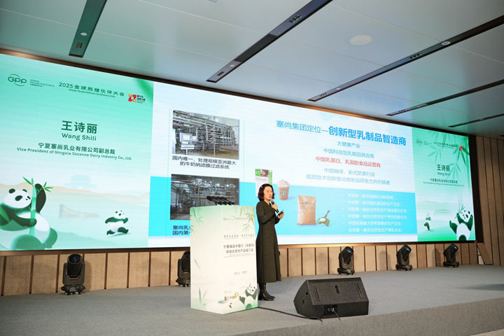 宁夏塞尚乳业有限公司副总裁王诗丽作企业推介。