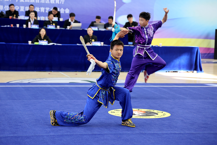 在为期3天的比赛中,来自宁夏全区五个地市的358名校园武术英才同台竞技,相互切磋。太极拳、翻子拳、查拳等中华拳术依次登场,一招一式皆是青春活力;刀、剑、枪、棍等传统器械精彩亮相,你来我往尽显武术精魂。