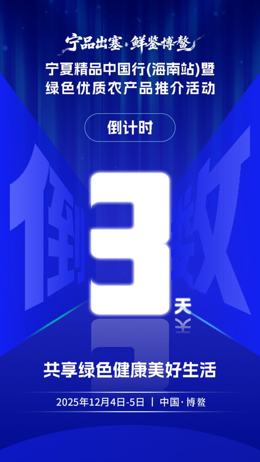 值此盛会之际,为集中展示宁夏农业品牌建设成果,拓展农产品市场空间,宁夏回族自治区农业农村厅联合新华社宁夏分社,将于12月4日至5日特别举办“宁夏精品中国行(海南站)暨绿色优质农产品推介会”及相关展览展销活动。